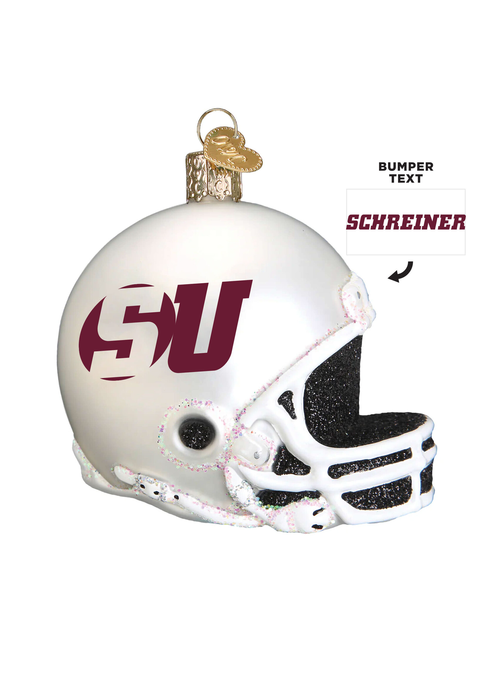 Celebrate Schreiner University's inaugural football team in 2026 with this glass football helmet ornament. A perfect keepsake for fans, it showcases your Mountaineers spirit and anticipation for the exciting season ahead. A must-have for any collector!